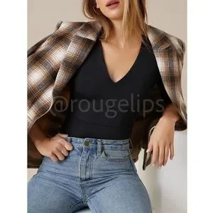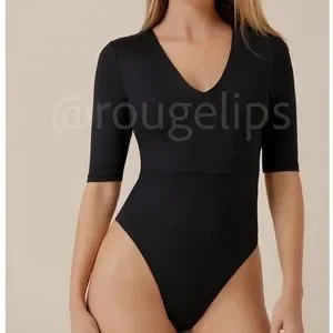 Black V-Neck Slim Fit Bodysuit Half Sleeve