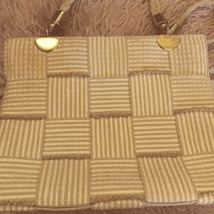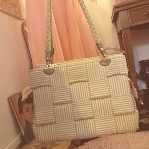 MCM Italian Vintage 60s Cream and Metallic Gold Shoulder Bag