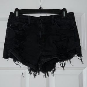 Great condition! Black distressed jean shorts with stretch. Comes up just alittle but higher on the waist line. So comfortable and stylish! Size 7, 27in waist.