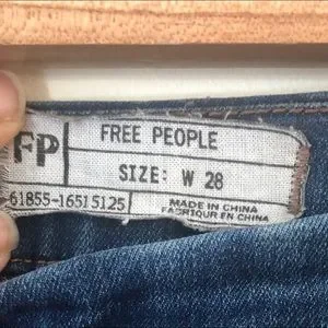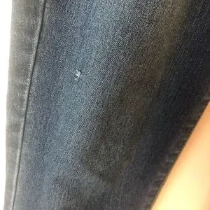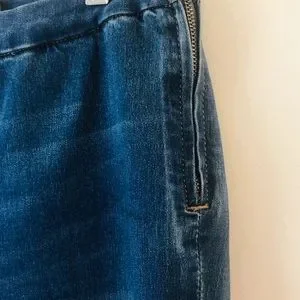 Dark denim. Side zipper. High waisted. Stretchy. Torn Size tag. Light snag distressing on one leg. See pictures thoroughly.