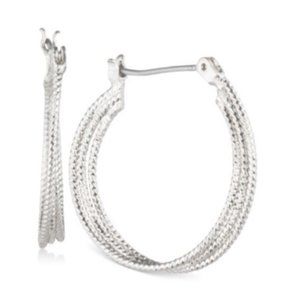Nine West Silver-Tone 3 Row Twist Click-Top Hoop Earrings New
