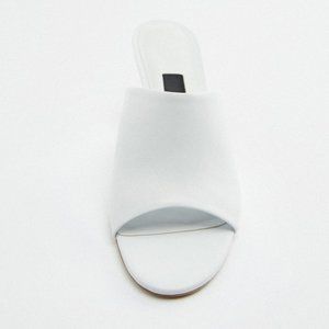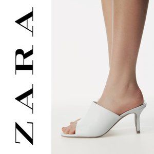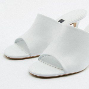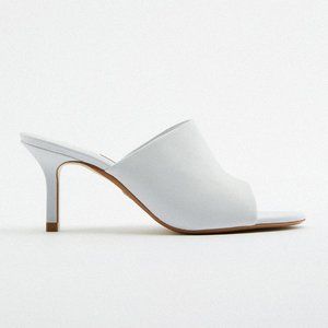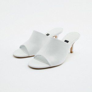 NEW Zara White 100% Genuine Soft Leather Slip On Sandals Heeled Mules Size 10