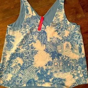 EUC Lilly Pulitzer reversible Florin top, sz XL. Toile Me About It/solid blue