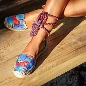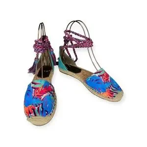 Circus by Sam Edelman Lenora Ankle Wrap Espadrille Sandals Colorful Palm 8.5