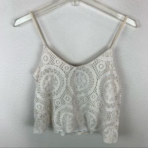 American Eagle Outfitters lace crop top in a white cream color. Small. Spaghetti straps. Excellent condition.