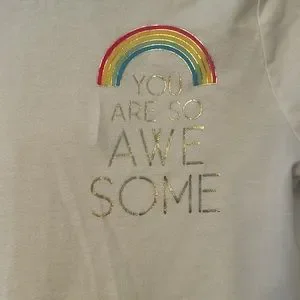 Super cute and uplifting white hoodie tee featuring a colorful rainbow graphic and metallic “You Are So Awesome” text. This piece is perfect for everyday wear, school, or casual outings, with a lightweight and comfortable feel.