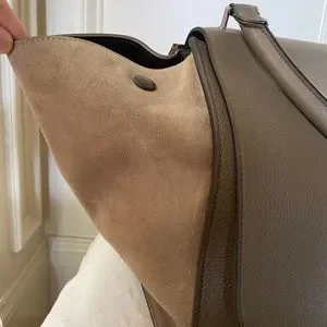 Taupe calfskin Céline Large Trapeze bag with silver-tone hardware