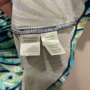 Like new Lilly Pulitzer dress worn once. No stains or rips. Size XS. Has pineapple and peacock designs with blues, greens, and white.