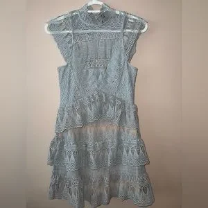 Aqua Light Blue Crochet Lace Mini Dress