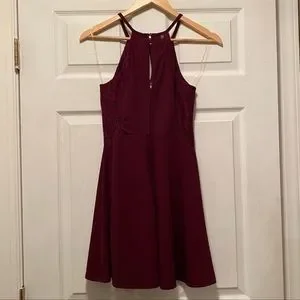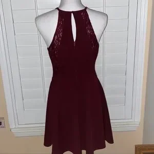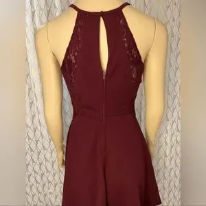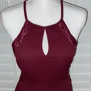 Beautiful wine red color. Lace trim on sides. Keyhole front and back.