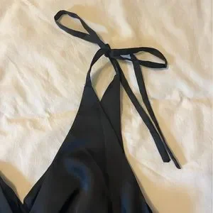 NWT black womens top Tie straps Elastic empire waist 100% polyester