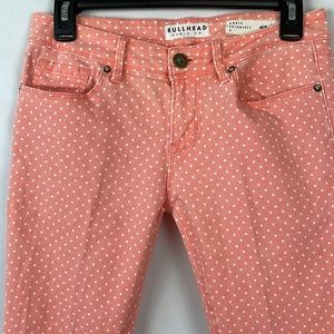 Bullhead Denim Co. Salmon w/White Polka Dots Ankle Skinny Jeans - Size 7 Juniors