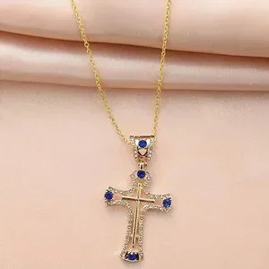 Cross Hip Hop Pendant Blue Stones with Necklace fine Jewelry Men Women