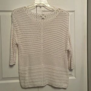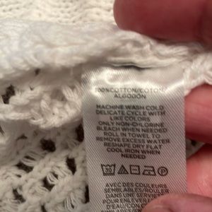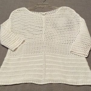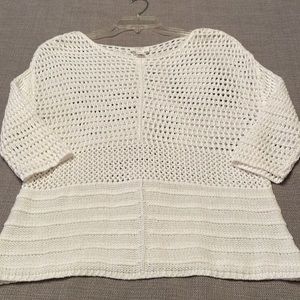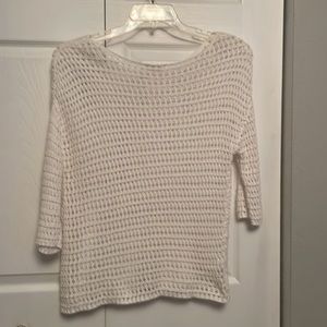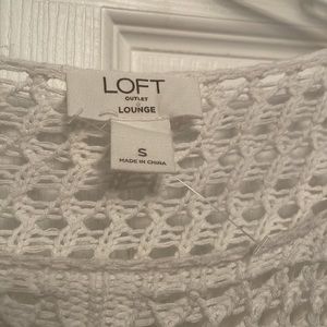 Purchased new and never used LOFT Outlet LOUNGE white cotton pullover top, quarter length sleeves, clean and in perfect condition. Will have to wear something underneath. Nice quality! Would make a nice swimsuit coverup!