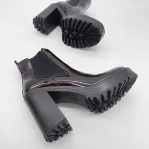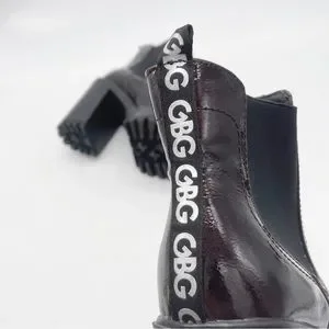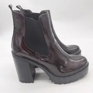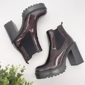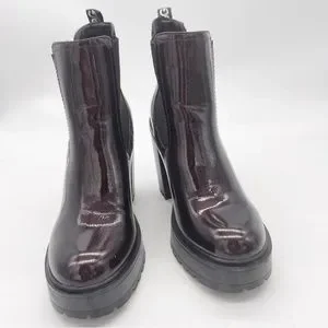 GBG Los Angeles Faux Patent Leather Burgundy Lug Sole Heel Chelsea Boot Size 11