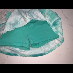 Green and white tye dye skirt with attached shorts