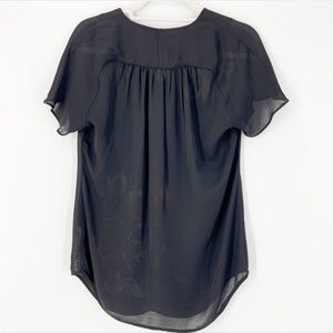 CAbi Fiore Black Floal Tunic Top Short Sleeve V-neck Pullover Semi Sheer