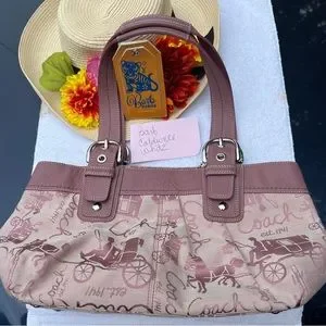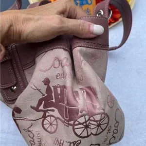 💜 Overall Condition: Canvas, all over coach signature and carriage logo and pink leather trim.