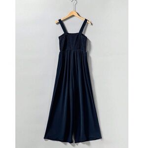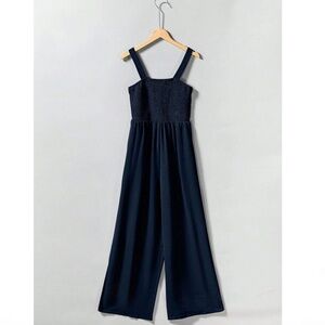 Navy Blue Jumpsuit Slant Pocket Wide Leg Shirred Bodice