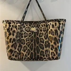 Dolce&Gabbana (Authentic) Leopard Print Patent leather Tote Bag