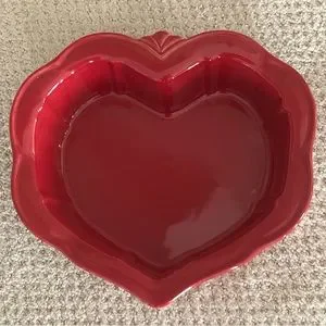 Pavillion brand Heart Shaped Deep Dish microwave/dishwasher/oven to 400 degrees safe: outer measurements 9” x 9.75” x 2.75”. This dish has no signs of use.