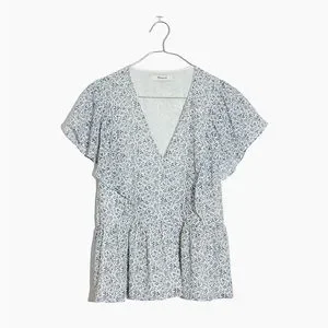 Madewell Georgette Ruffle-Sleeve Peplum Top in Americana Floral in small