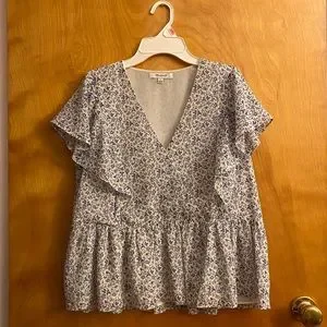 Madewell Georgette Ruffle-Sleeve Peplum Top in Americana Floral in size small