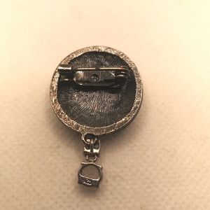 Handmade Vintage 1970's cameo made of plastic, base metal, rhinestones and a sterling silver drop set with cubic zirconia.