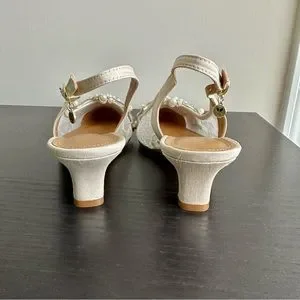 J. Reneé Strovanni Ivory/Gold Floral Pearl Ornament Slingback Pumps