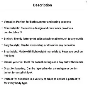 🦄Letter Print Tank Top, Sleeveless Crew Neck Casual Top For Summer & Spring, Women's 👑