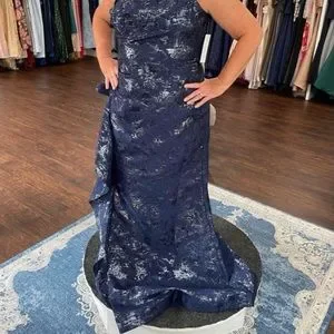 Mother of Bride or Groom dress-navy with silver metallic threading
