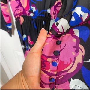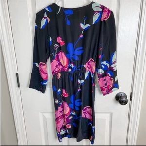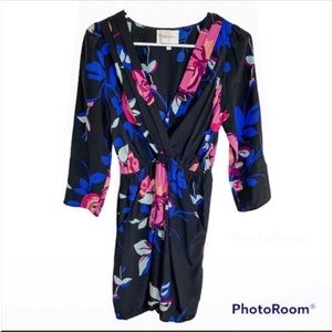 YUMI KIM ANTHROPOLOGIE Revolve Floral Long Sleeve Mini Dress Silk XS Black Pink Blue.