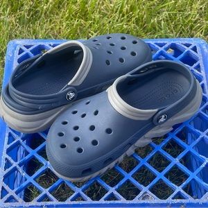 Crocs Duet Women’s 6 Men’s 4 Max Dual Comfort Clogs Blue Gray 201398 Flaw READ