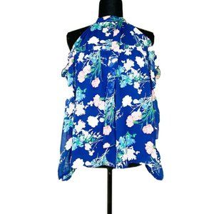 C Boho Chic Floral Blouse Chiffon Cold ShoulderBlue Top By C Size Small