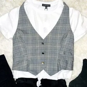 Daytrip Womens Blue•Black•White•Silver Plaid Waist Coat style Vest