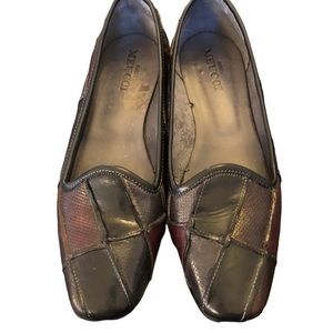 These loafer flats from Sesto Meucci are a brown and black patchwork print. Great craftsmanship from Italian designer, these shoes are comfy and last a long time. Great for the office or with jeans. Do have some wear but good condition. Your satisfaction is very important to me, please let me know if you have any questions before purchasing. Thank you for visiting my listing and Happy Shopping!