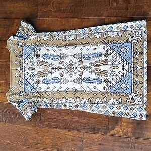 Tory Burch Moroccan Aztec Cream And Blue T-Shirt Dress size small