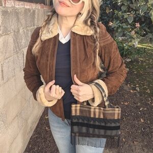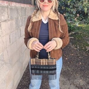 90s VTG Brown Plaid Fringe Mini Bag