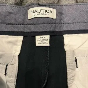 Nautica mens flat front navy shorts size 34w
