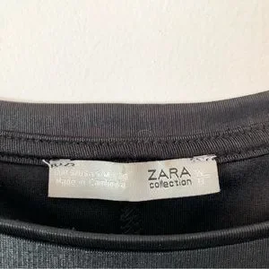 ZARA Collection Shiny Black Small Tshirt 🖤 Video added to show how material has a kind of shine to it. Labeled a size small but could work for a XS-M. Slightly longer back. Great condition.