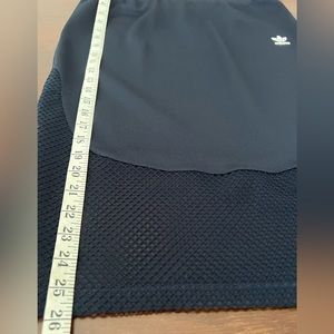 Navy, textured sporty midi skirt by Adidas. The last 7” of this fun skirt is netted. Not lined.