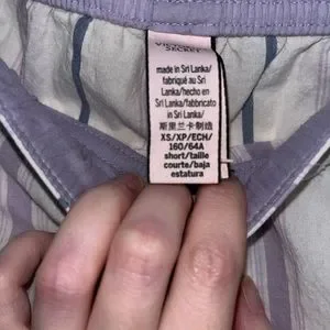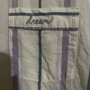 In nwot condition. Classic cotton button down pajamas. Light weight, no stains or flaws. White with purple, blue and grey accents. Embroidered “Dream” on the pocket. The shirt is an xs the pants are an xs short