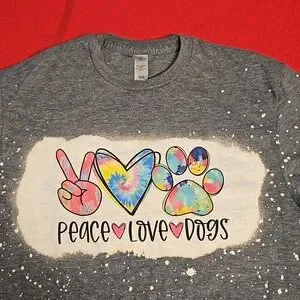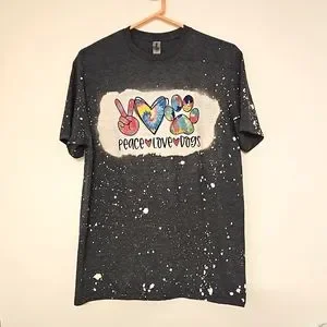•Perfect for all dog lovers. Multicolor tie dye rainbow in peace, love and paws...gray with faux bleach splatter spots.... excellent pre-owned condition.