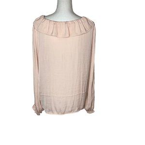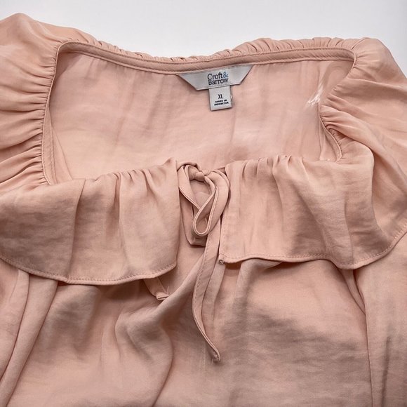Croft & Barrow Women's Ruffle Neck Long Sleeve Blouse XL Cameo Rose