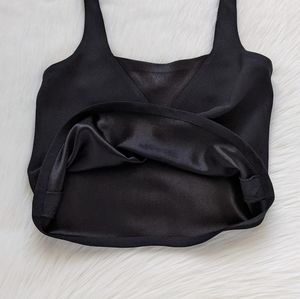 Vintage 90's Sonia Rykiel Paris sleeveless silky tank top in black. Excellent vintage condition; no holes, stains, or flaws. Black sleeveless tank top features a squared neckline and thicker straps for a very vintage 90's Y2k feel, with contrasting smooth silky triangle panel at center front. Great piece for layering + looks good all on its own