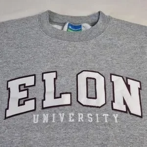 Champion Sweatshirt USA Elon University Spellout Grey Pullover Mens Size Medium.
