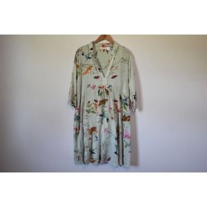 LA CERA Hummingbird Butterfly Print Dress Green Sundress Plus Size 1X H14855