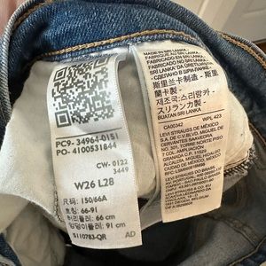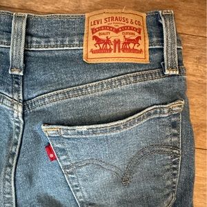 High Rise; Snug through hip and thigh; Button fly; Straight leg, stretch.