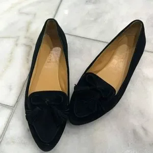Talbots Womens Black Suede Leather Loafers Sz 6 Bow Pointed Toe Flats Slip On