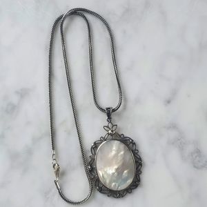 Sterling Silver Mother of Pearl and Marcasite Necklace